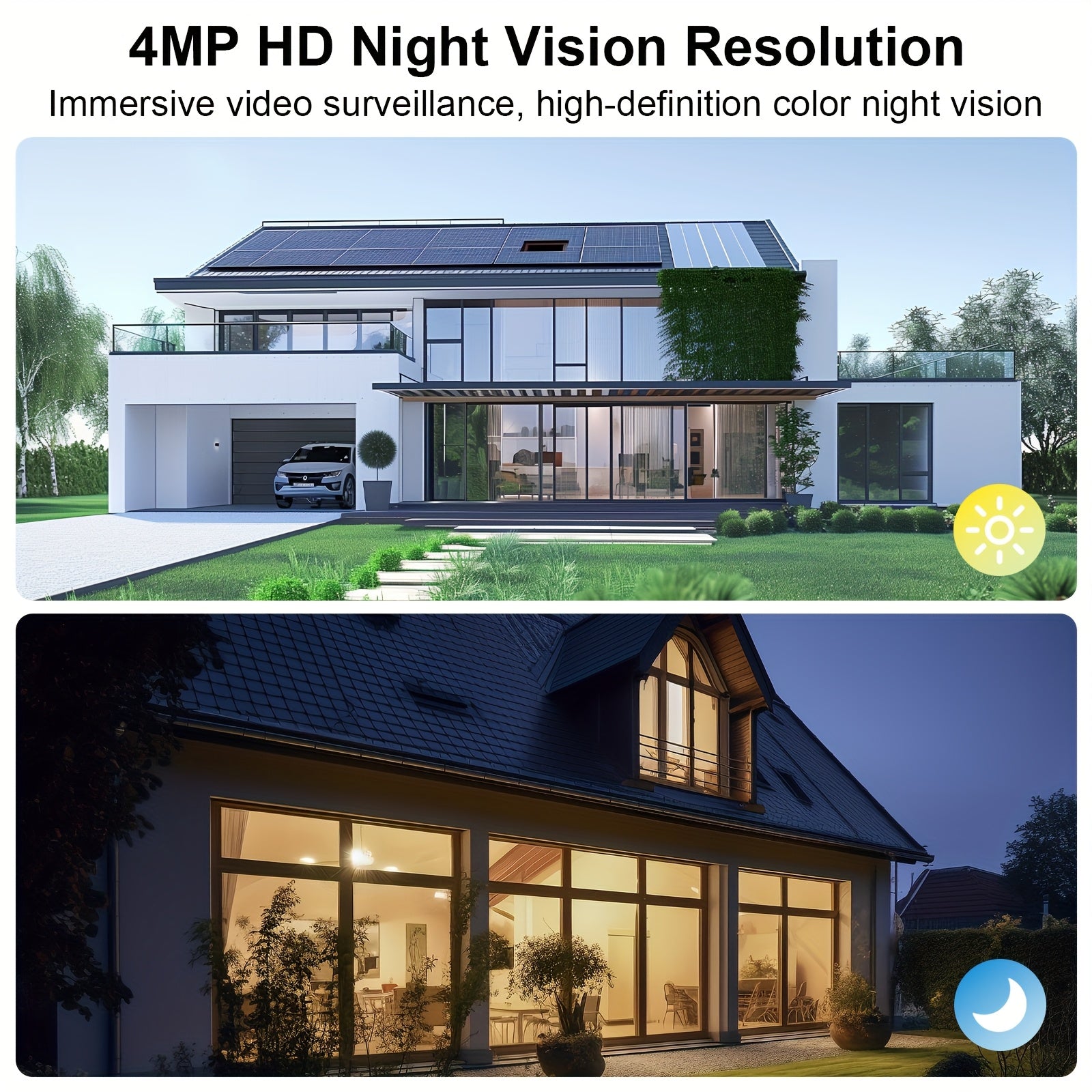 - Capture crystal-clear 4MP footage by day and enjoy reliable night vision that reveals what's happening around your property after dark.