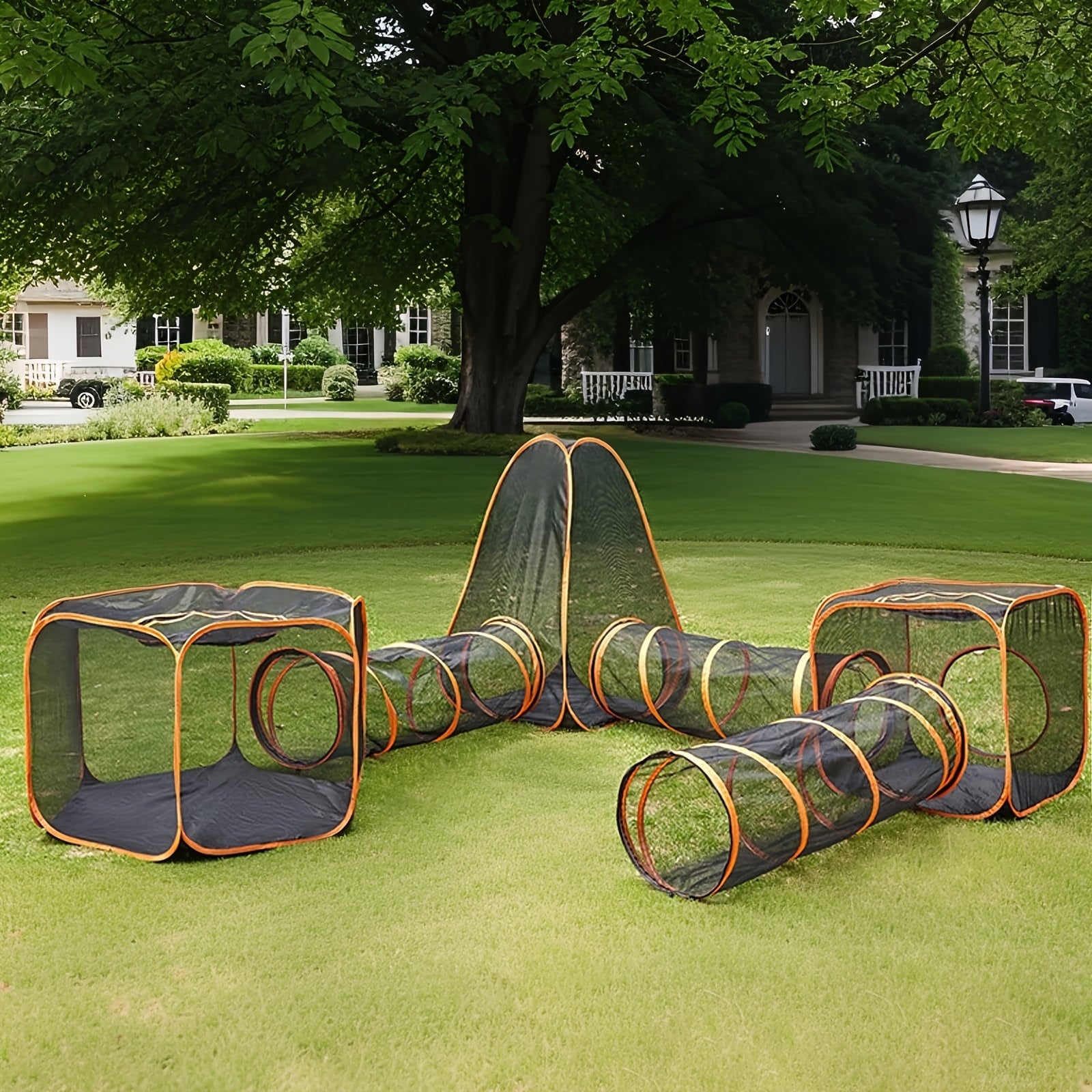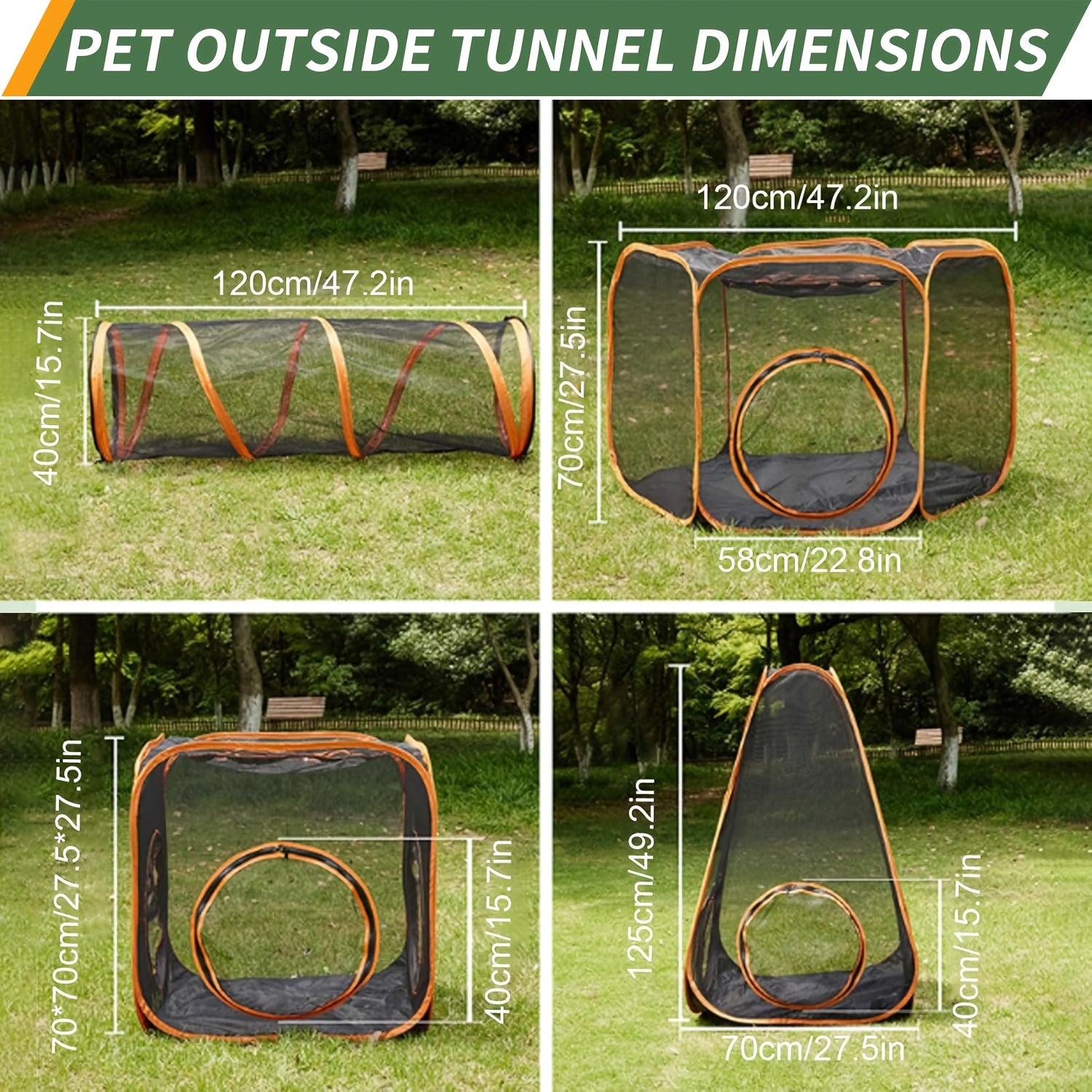 Experience a safe, versatile play space for your cat with the Six In One Foldable Pet Playpen with Tunnel and Tent.