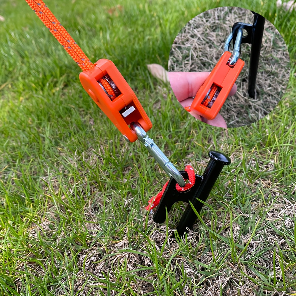 - Secure, adjustable tent ties for quick, dependable setups, featuring a 4-meter polyester rope and a carbon steel hook for lasting reliability.