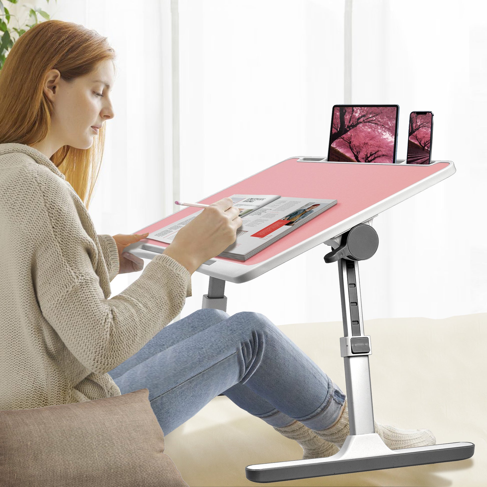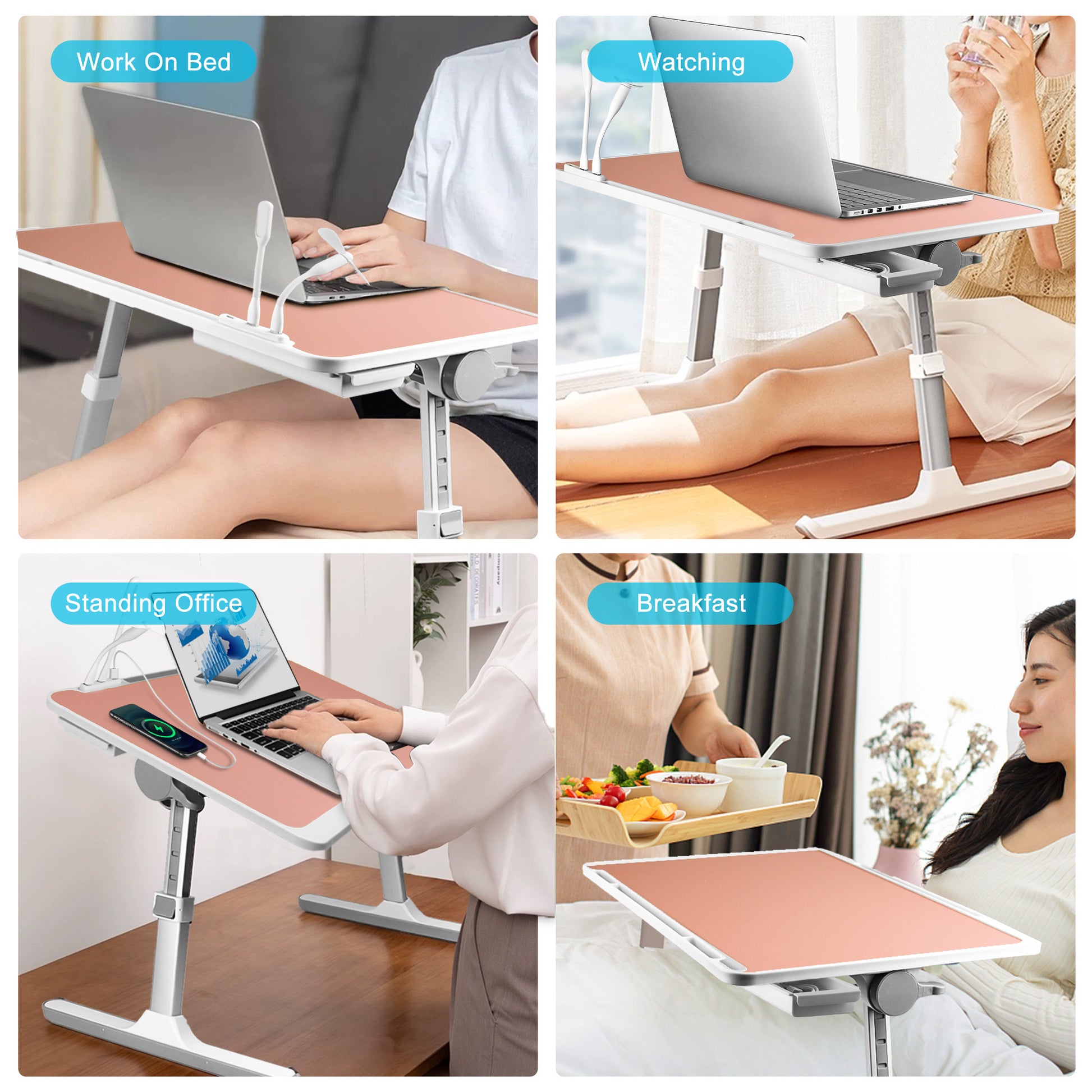 Upgrade your bed-to-work routine with the FWPP Adjustable Laptop Lap Desk Stand for Bed, featuring a built-in USB light.