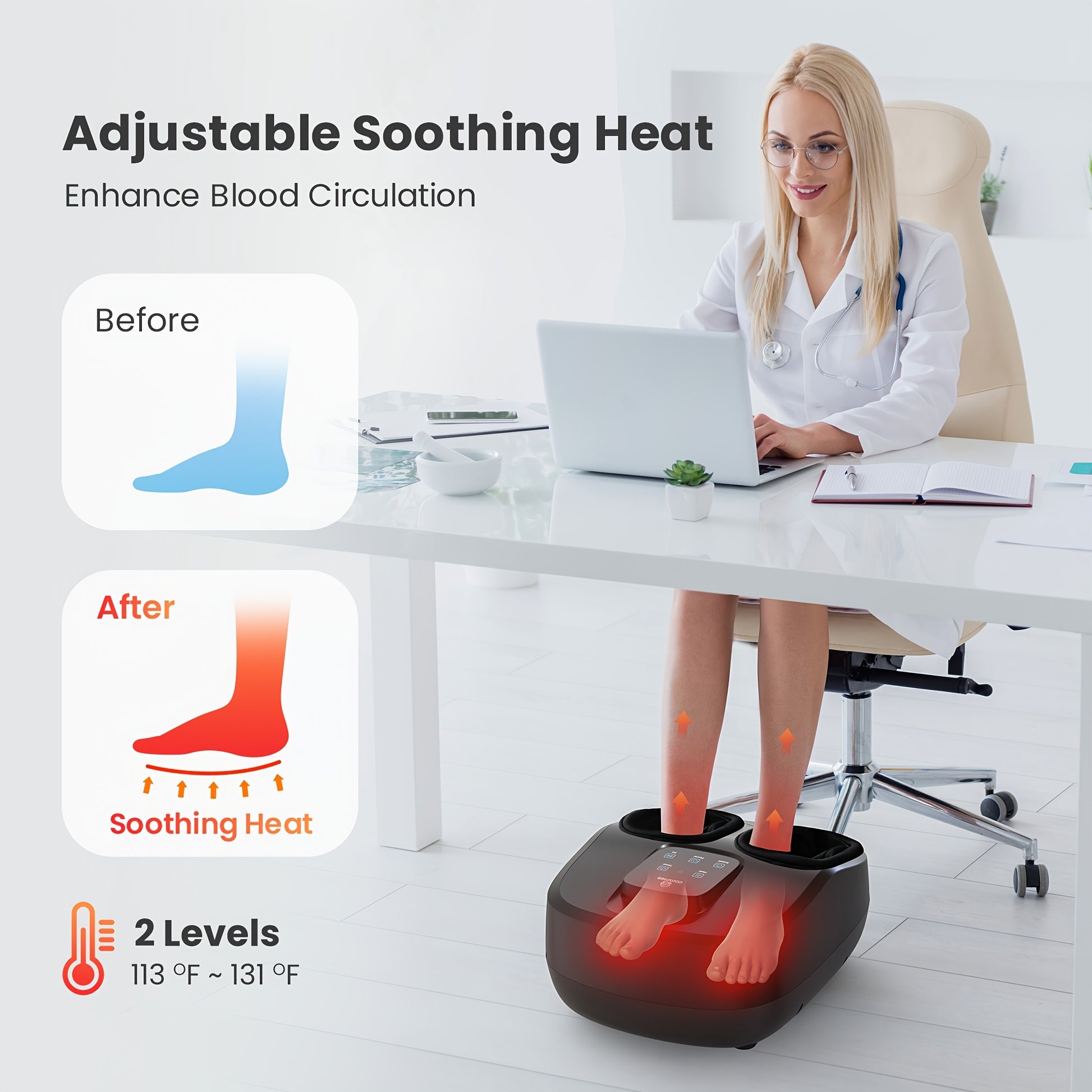 Experience unparalleled relaxation with the Comfier Shiatsu Foot Massager with Heat and Compression Relief. Designed to melt away stress and tension, this innovative foot massager is perfect for anyone seeking a premium at-home massage experience. Incorporating shiatsu therapy alongside soothing heat and gentle compression, it provides targeted relief specifically for tired feet, making it a must-have in the foot massager category.