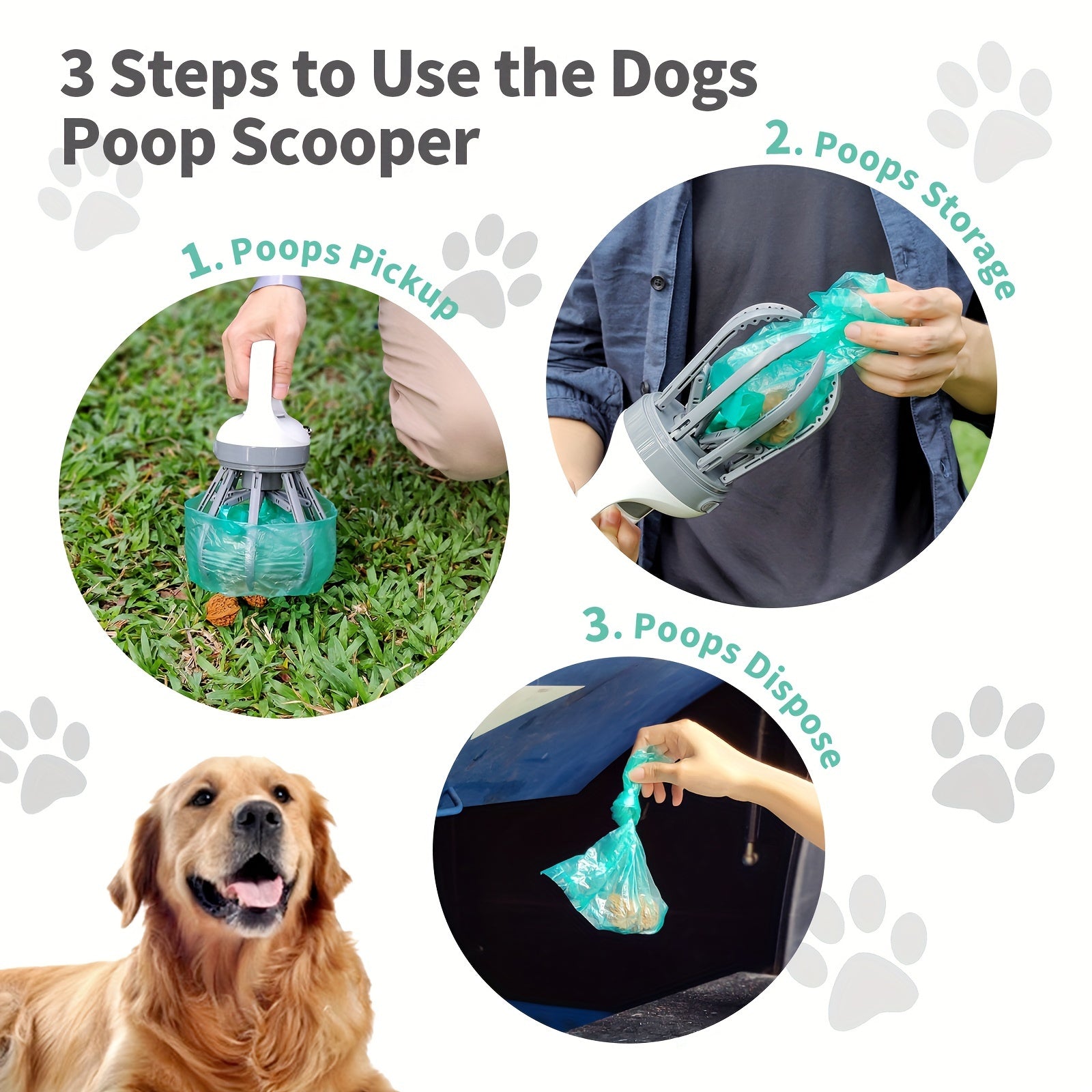 Portable 2in1 No Touch Dog Pooper Scooper With Bags