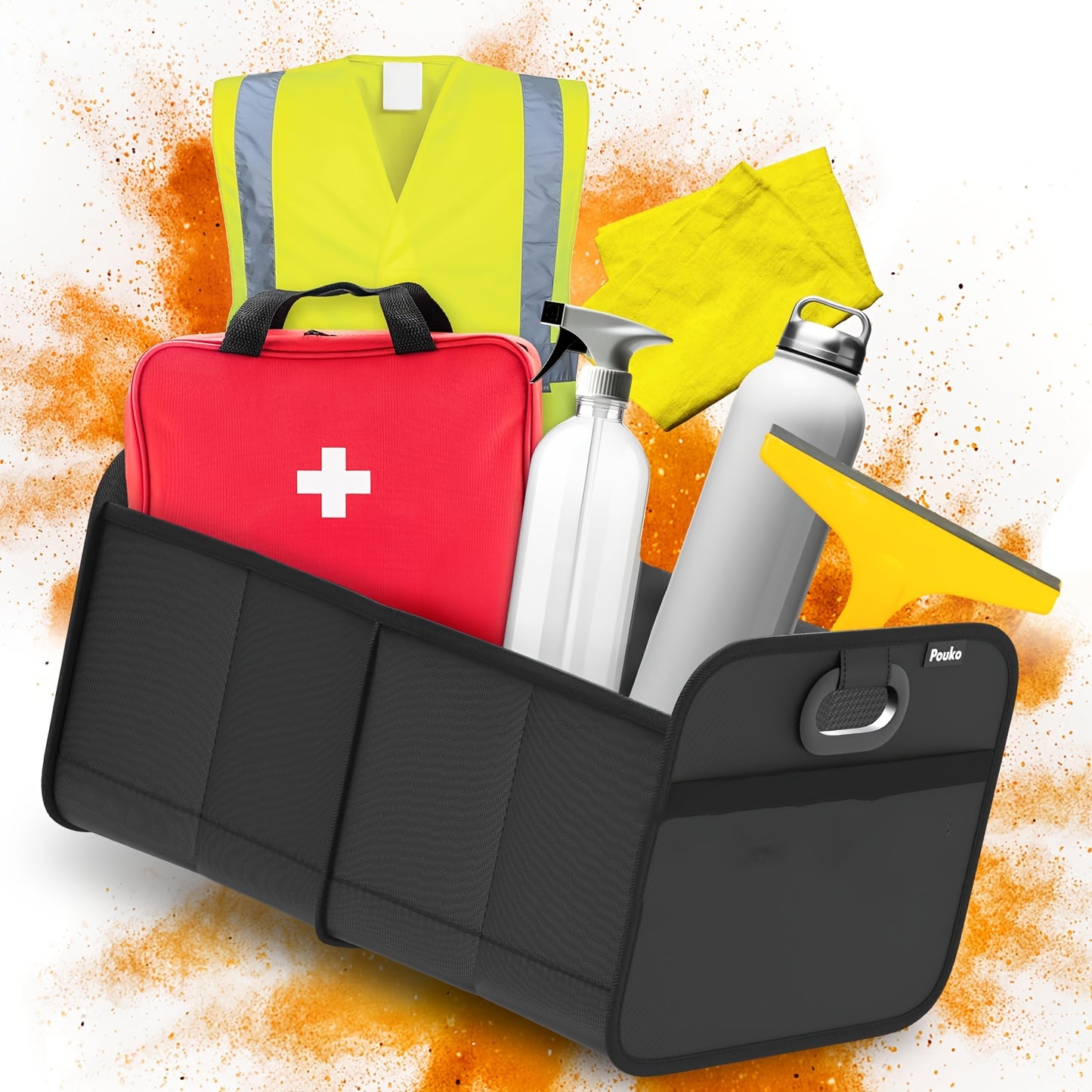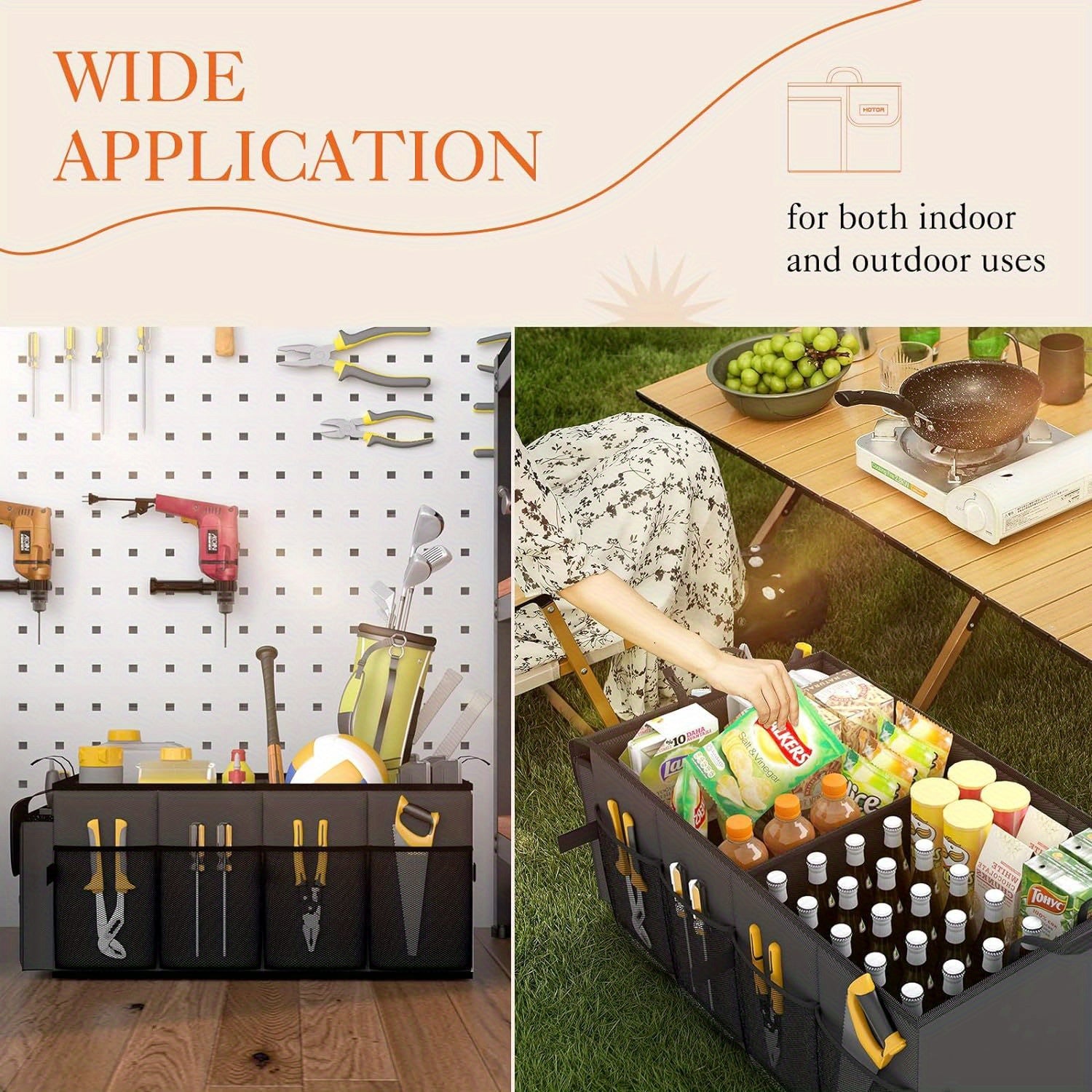 - Large capacity design lets you organize groceries, sports gear, tools, emergency supplies, and more in one sturdy bag for quick access in your vehicle.