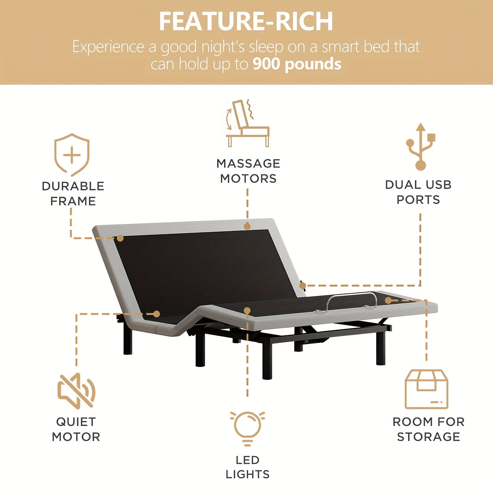 - You can adjust the bed to your ideal position with remote-controlled head and foot elevation for reading, watching TV, or sleeping.