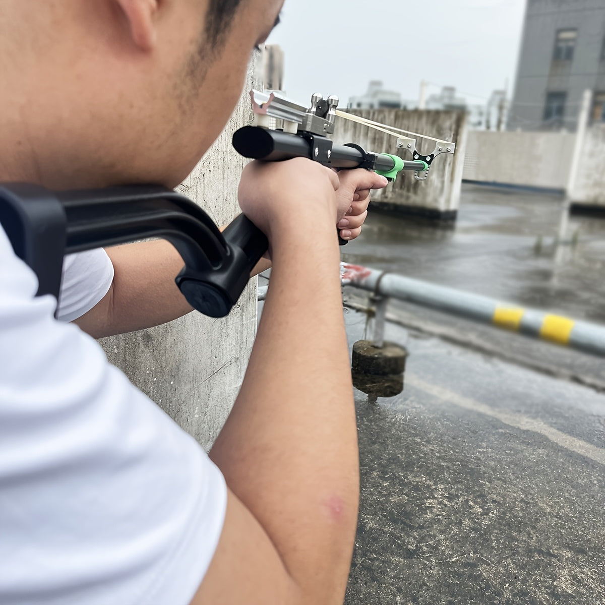 Hit your mark with precision and power using this extensible stainless steel slingshot with an ergonomic handle, designed for outdoor hunting.