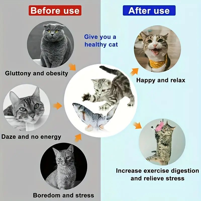 - Realistic Dancing Wiggle: Its lifelike wiggle and flopping tail mimic a real fish, triggering your cat’s natural hunting instincts and turning solo play into athletic adventures.