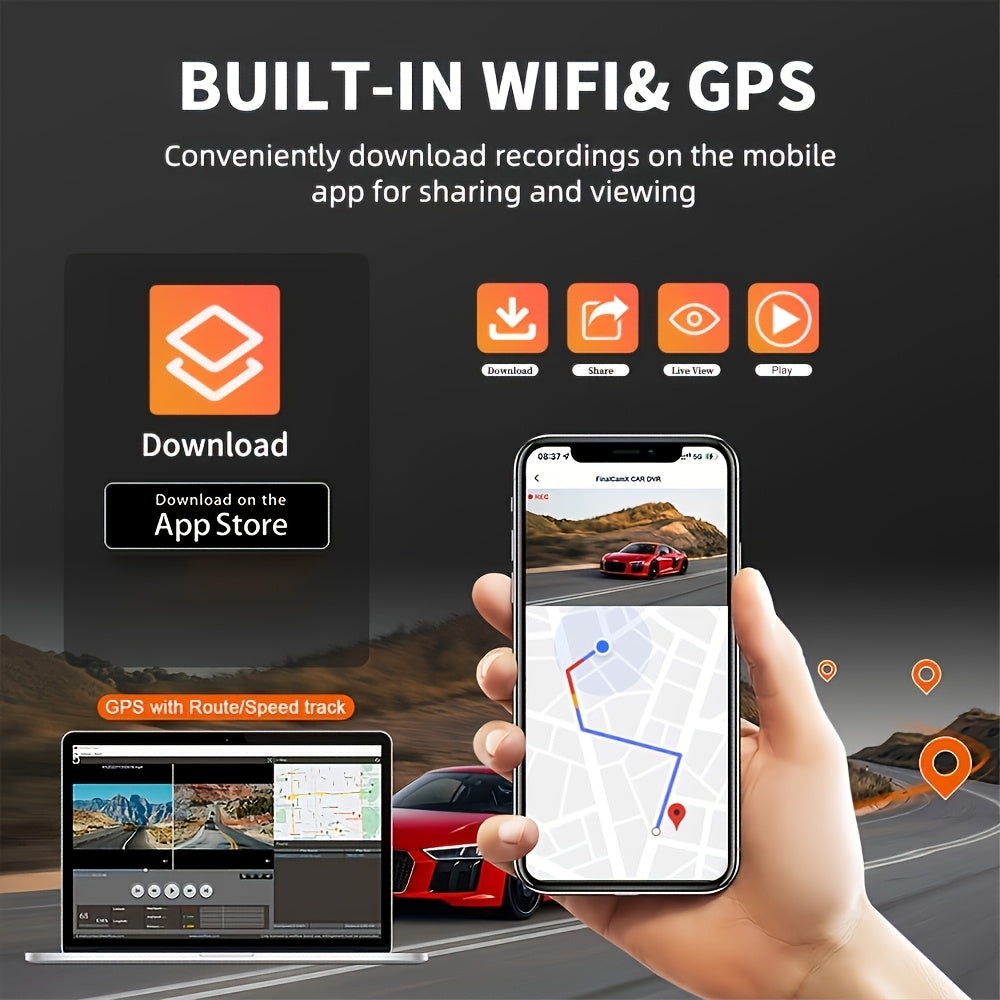 - Optimized for driver-side orientation and controlled via a companion application for quick access to camera settings and video management.