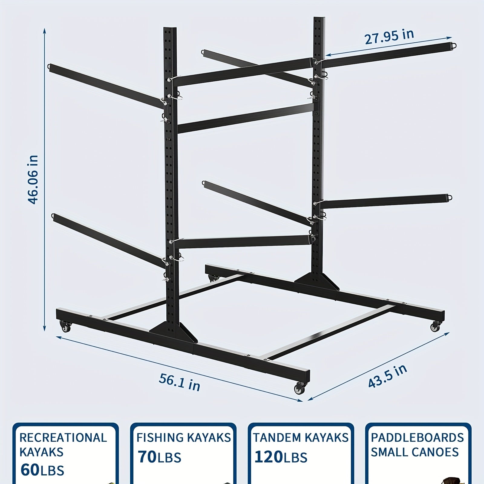 - With 80 inches of height, 28-inch arm extensions, and adjustable spacing between arms, you can tailor the setup to fit kayaks of varying sizes.