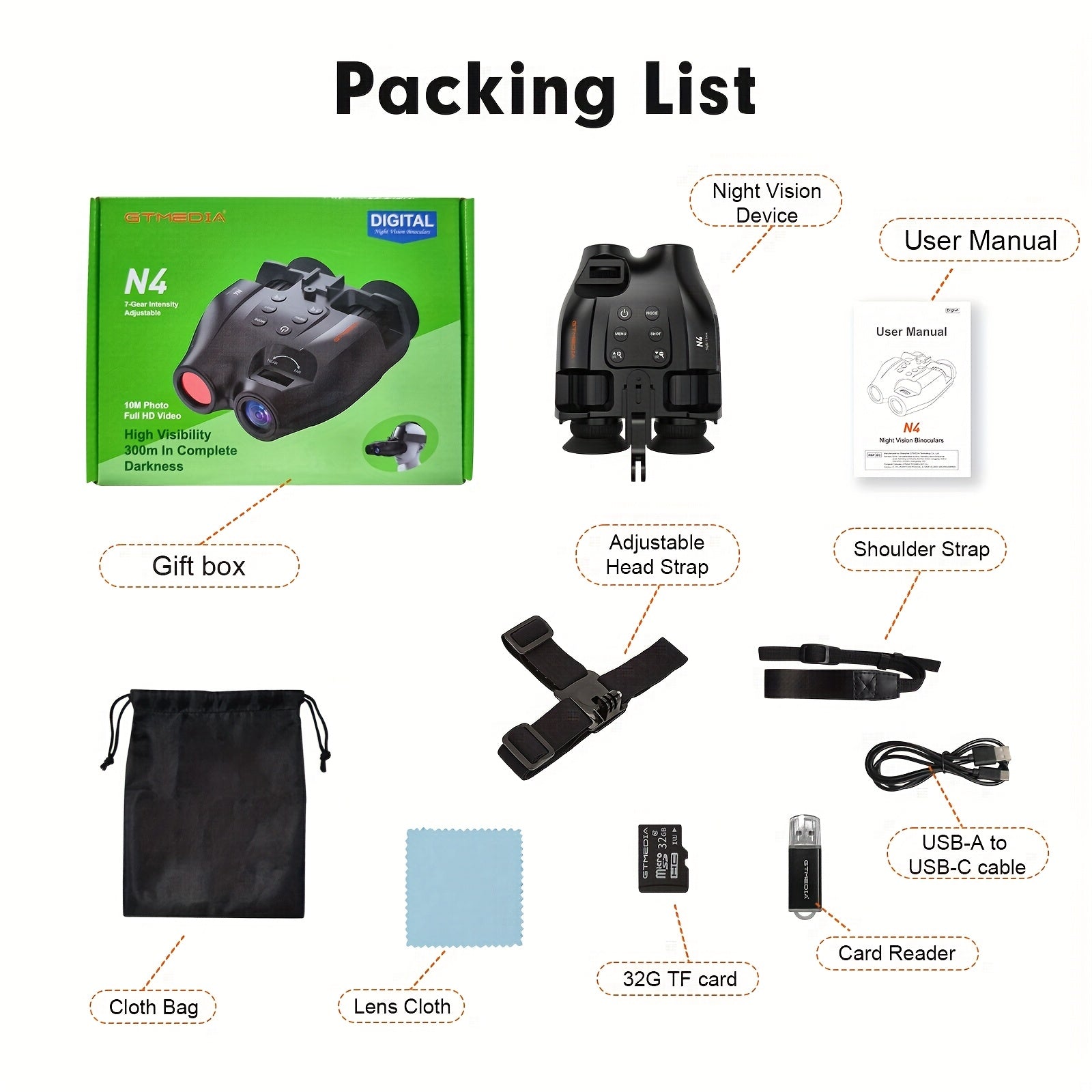 Experience hands-free night viewing with the Night Vision Binoculars Head Mounted Infrared HD Display by T GTGUARD.