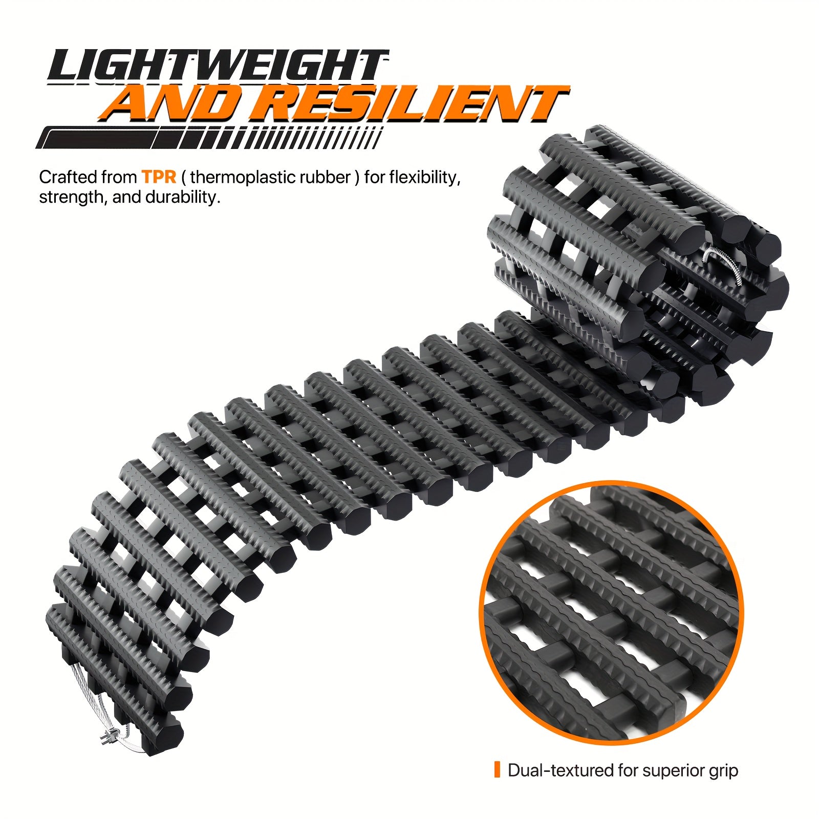 Crafted from high-quality rubber, these traction mats offer durability and flexibility, making them resistant to wear and tear. Their robust design allows for effective traction in mud, sand, snow, and gravel, giving you the peace of mind you need on your adventures.