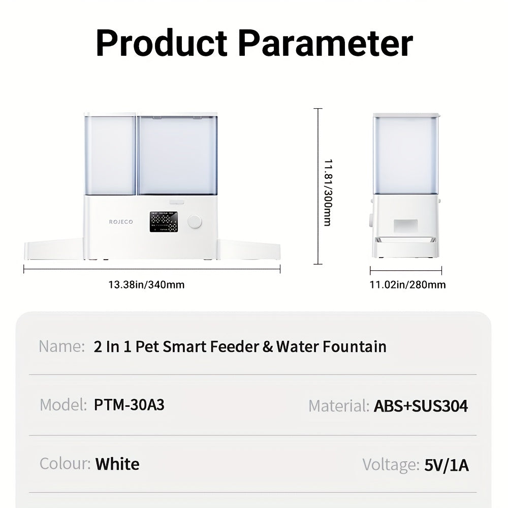 Positioned within the growing pet care market, the ROJECO Automatic Pet Feeder and Water Fountain stands out due to its multifunctionality and user-friendliness, ideal for busy pet owners who want the best for their companions. Say goodbye to the hassle of manual feeding and hello to peace of mind.