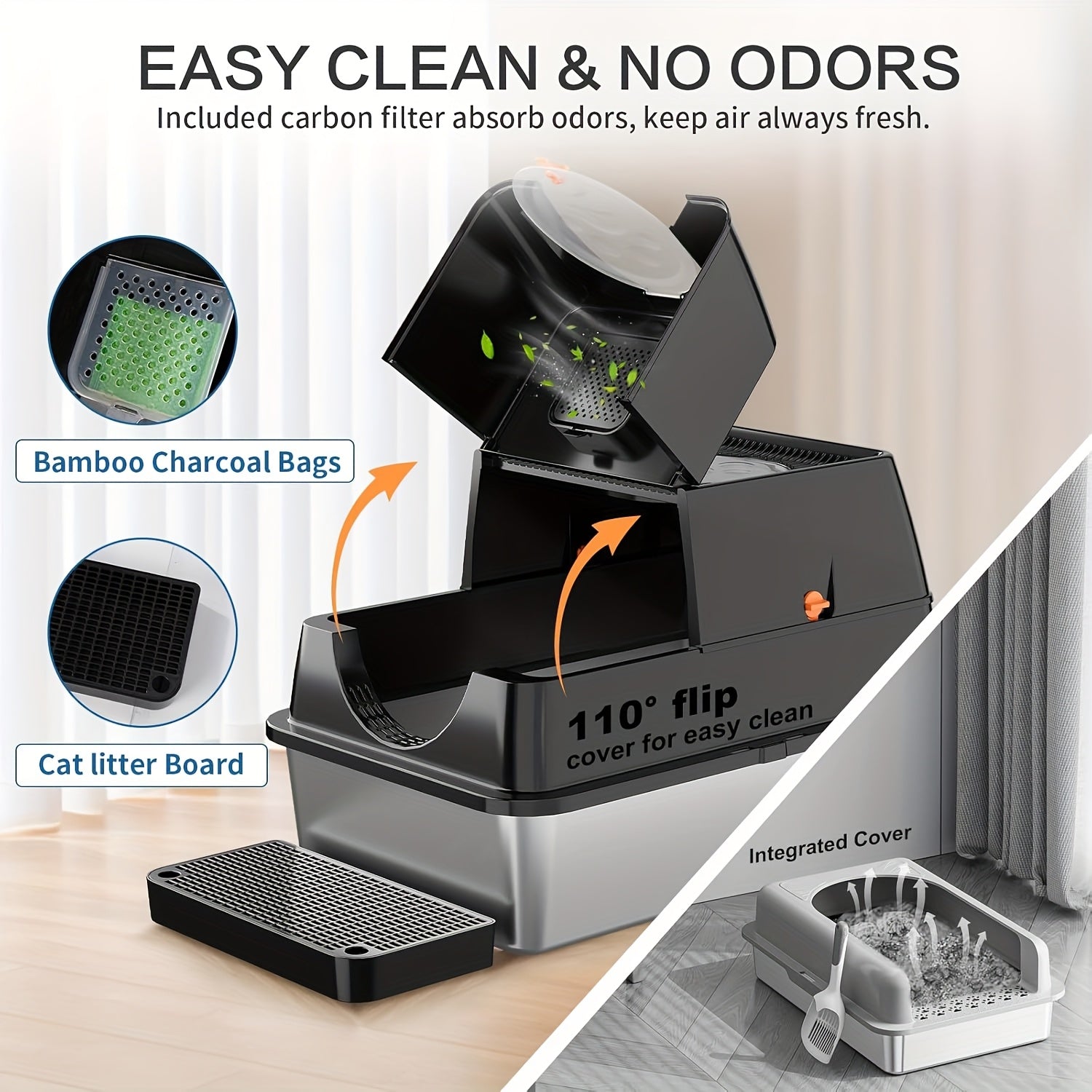 Whether you're a seasoned cat owner or a new pet parent, our Stainless Steel Cat Litter Box Set is designed to meet your needs while keeping your furry friend happy. Say goodbye to unpleasant odors and constant cleaning with this innovative litter box solution!