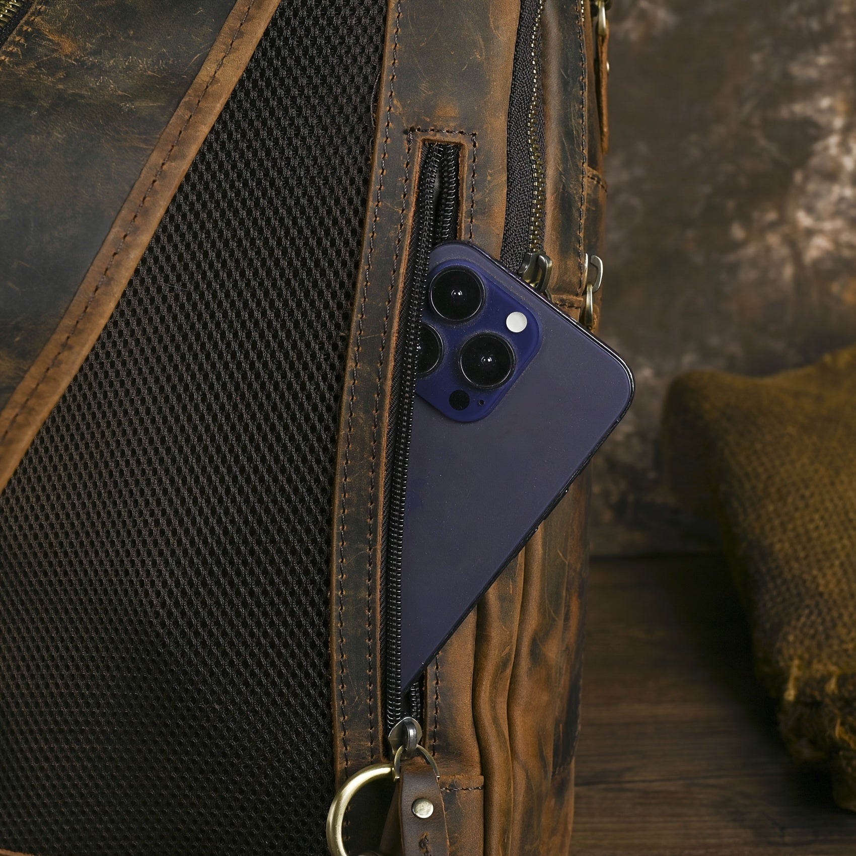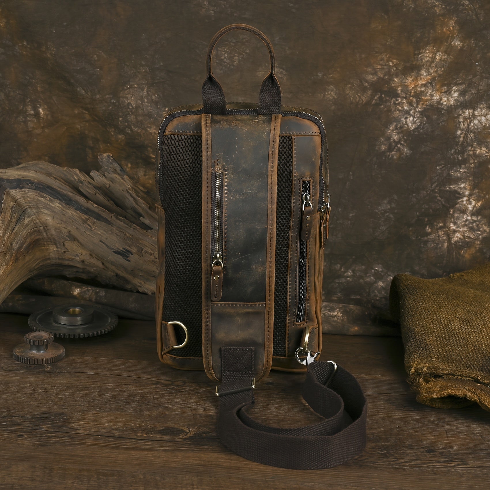 Elevate your outdoor adventures with our Stylish Leather Chest Bag, crafted from premium Brown Crazy Horse Leather. This durable accessory not only enhances your style but is designed for functionality and convenience.