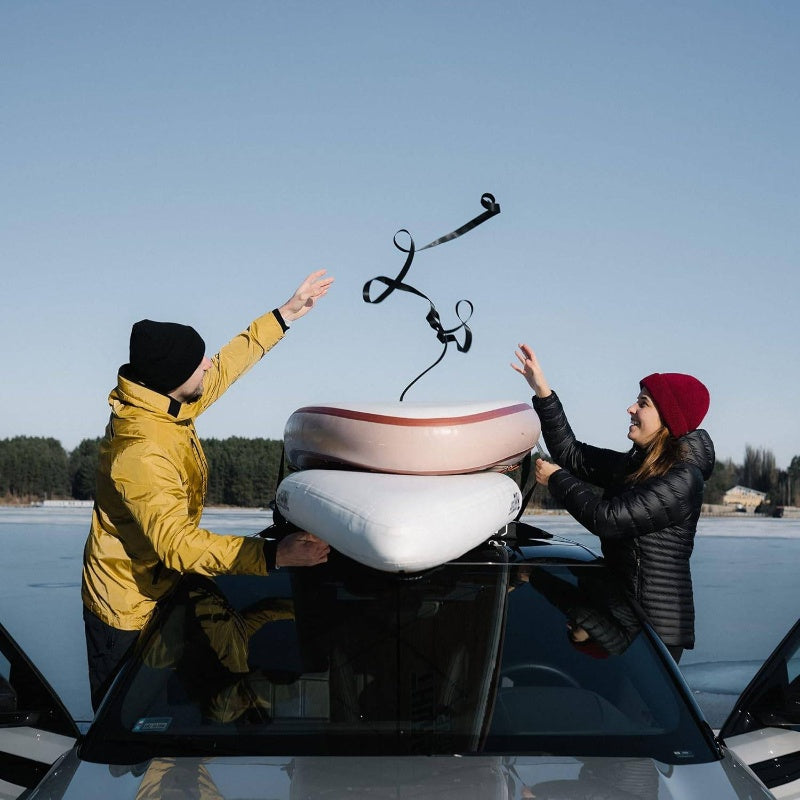 - Transport your kayaks, skis, snowboards, and SUP paddle boards with a versatile soft roof rack that fits most cars.