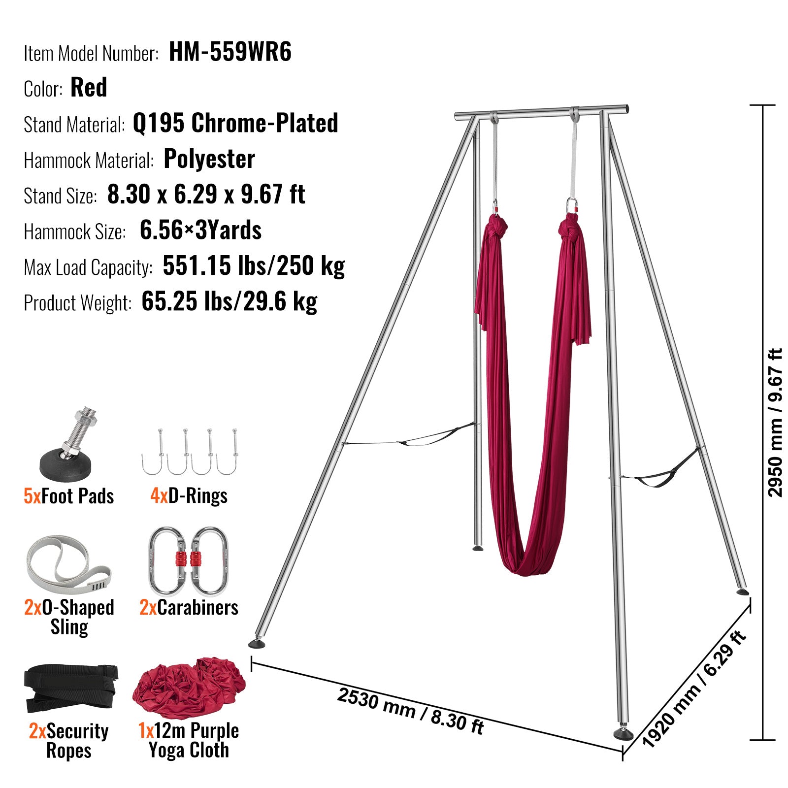 - Sturdy Construction: With a robust Φ1.8 in/45 mm steel tubing frame, this yoga swing stand supports a maximum load capacity of 551.15 lbs, ensuring stability and safety during your sessions.