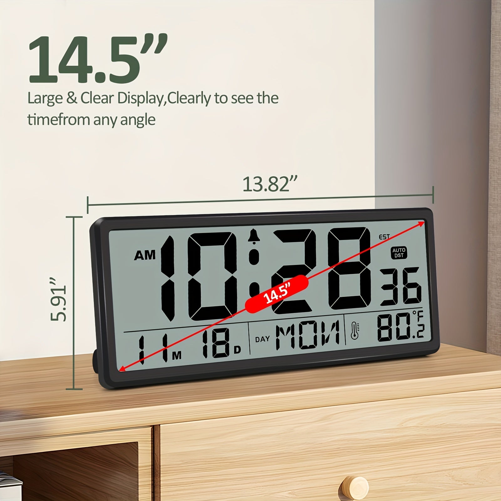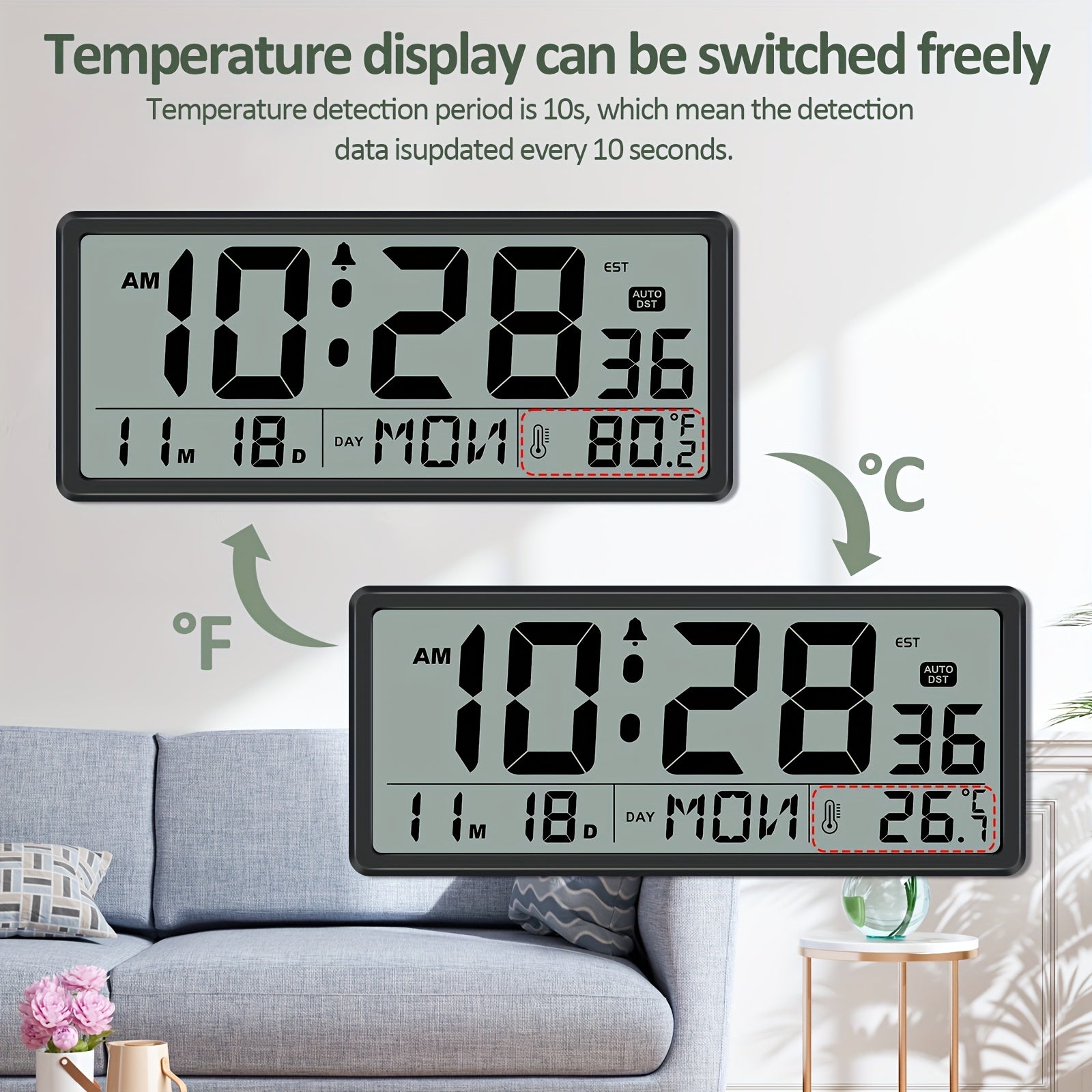 Elevate your timekeeping experience with the Large Display Digital Wall Clock. Order yours today and enjoy the convenience of knowing the time, temperature, and date at a glance!